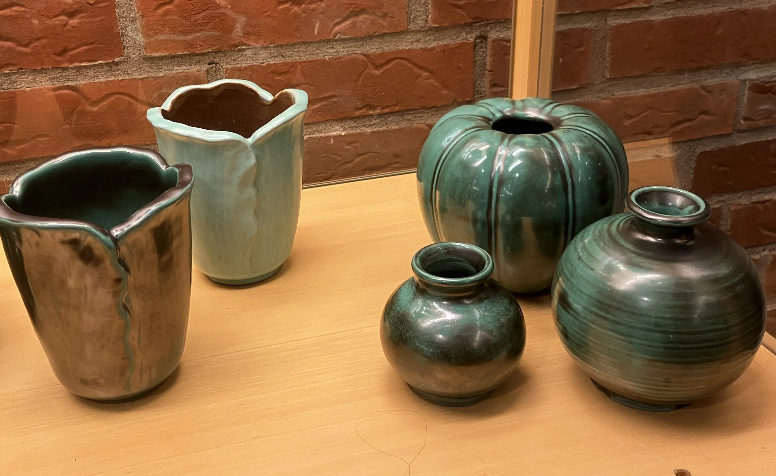 I utställningsskåpen som numera finns på Storgatan 11 (öppet 8-16)satte vi in grön keramik från 30-talet.